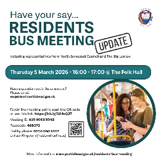 - Residents are welcome to join the meeting in person at the Folk Hall, Portishead