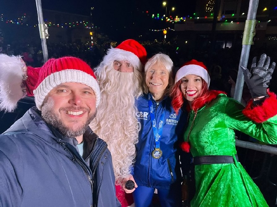 This year world champion triathlete, Judy Orme, was nominated to switch the lights on and Judy joined Downsy, Father Christmas and one of his elves on stage to flick the switch.